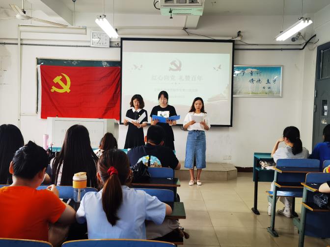 百年风雨兼程,世纪沧桑巨变。为庆祝中国共产党成立100周年,向党的百年华诞献礼,进一步激发党员热爱党、拥护党,培育和践行“红船精神”,进一步强化“为党工作、为民服务、为国担当”的使命意识和家国情怀。71日上午10时,文学与教育学院学生第三党支部全体党员在观看庆祝中国共产党成立100周年大会直播后,在教学楼B315教室开展“红心向党,礼赞百年”庆祝建党100周年主题诵读活动。本次活动由党支部书记黄宇琛老师主持,支部党员全体参加。