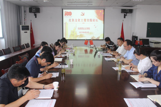 为庆祝中国共产党成立100周年,深入学习贯彻习近平总书记重要讲话精神,扎实推进党史学习教育, 2021630日上午,“蚌埠学院红色文化主题实践论坛”在综合楼1415马克思主义学院会议室举办。校党委委员、宣传部长李荣出席论坛并讲话。马克思主义学院直属支部书记、院长邬旭东主持了论坛。马克思主义学院红色文化研究团队成员及相关学院红色文化研究人员参加了论坛。