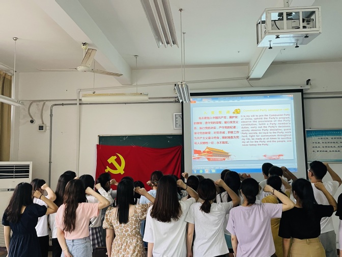 学生党支部将组织生活会作为党史学习教育的重要契机,组织全体党员重温入党誓词,并要求同学们继续认真学好党史这门必修课,从党的百年奋斗历程中汲取智慧与力量,用党的奋斗历程与伟大成就,鼓舞斗志,明确方向;用党的光荣传统和优良作风,凝聚力量;用党的实践创造和历史经验启迪智慧,砥砺品格。