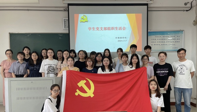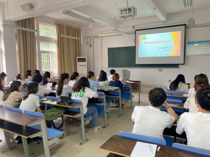 7月7日中午,外国语学院学生党支部在教学楼A120教室召开了党史学习教育专题组织生活会。