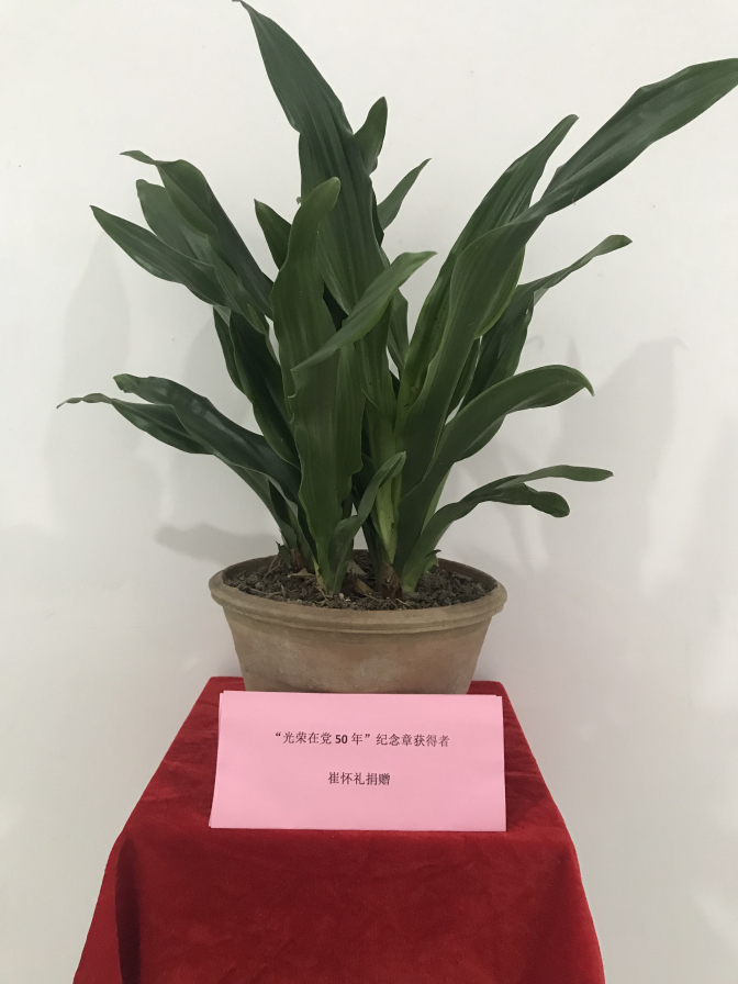 一枝一叶,承载老党员的一颗初心。2021年6月30日,党委书记陈国龙一行代表学校党委走访慰问“光荣在党50年“纪念章获得者代表崔怀礼。崔怀礼在党67年,1954年6月荣获“安徽省劳动模范”荣誉称号。崔怀礼把家中养植了60年的万年青赠于党和学校,并表示希望中国共产党永远年轻,也希望学校在党委的领导下发展越来越好,如万年青般永葆青春。崔怀礼的儿子介绍:“父亲经常给我们进行党的传统教育,所以我们这一代要忠于党和人民,为社会主义建设多做贡献。”