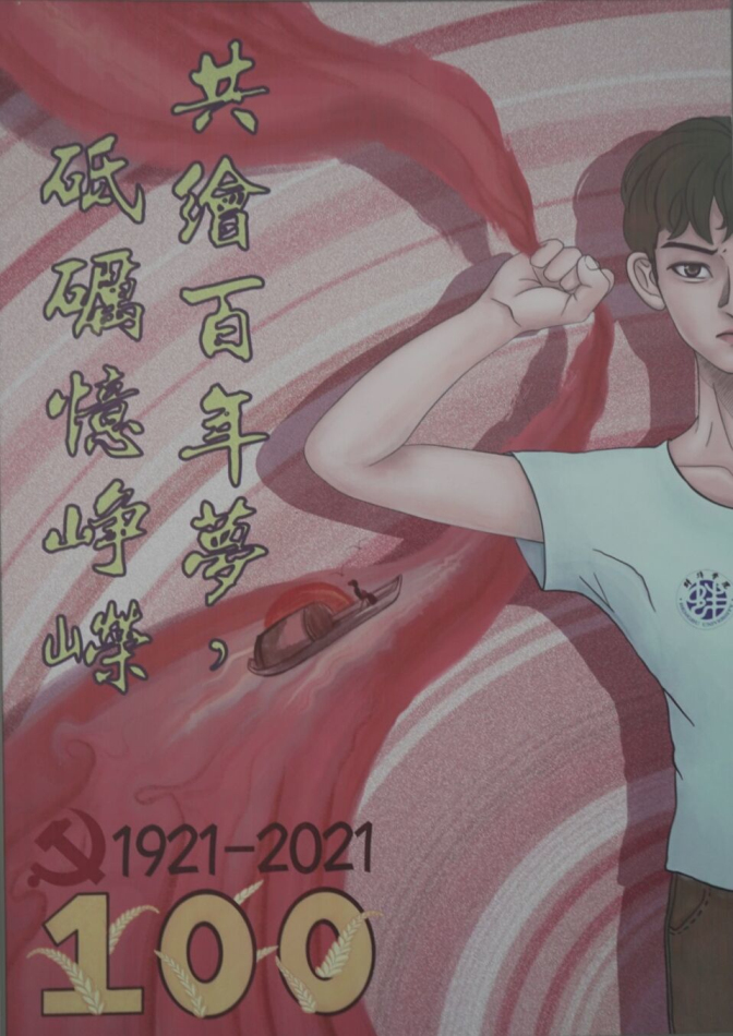 5月初启动以来,得到了全校青年大学生的热烈响应和广泛参与。在设计过程中,同学们首先深入研读习近平《论中国共产党历史》《毛泽东、邓小平、江泽民、胡锦涛关于中国共产党历史论述摘编》《习近平新时代中国特色社会主义思想学习问答》《中国共产党简史》等党史学习材料,在研读中形成自己的深刻感悟和创作体会,再结合各自的专业技能用可视化的图像、文字、色彩搭配等形式表达爱党爱国的心声。经过作品征集、作品初评、复评等环节,共选出110件作品入围,在此基础上,大赛组委会再组织专家进行评选,最终共选出56件优秀作品参加展览。