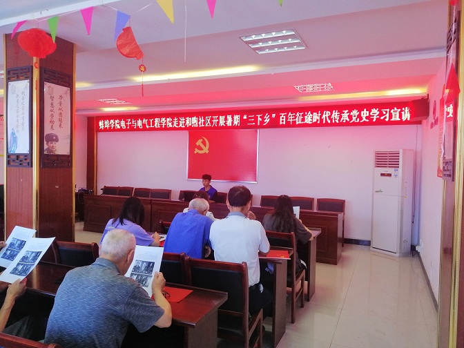 7月10日-11日,电子与电气工程学院学生党员与入党积极分子组成的志愿服务团队来到蚌埠市延安街道和煦社区进行志愿卫生服务、疫苗接种动员宣传、党史宣传讲解工作。