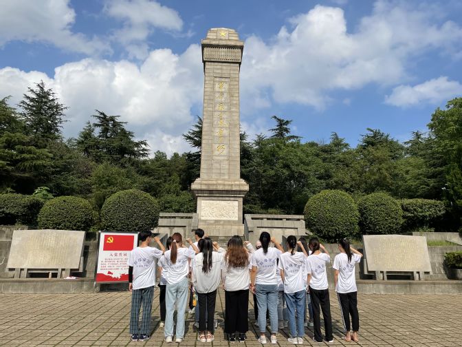 在革命陈列馆,走过一级又一级台阶,同学们在馆内通过参观史料及实物,了解了自辛亥革命至解放前夕时期蚌埠市革命发展的历史,感受到了革命先烈不屈不挠、奋勇向前的爱国主义精神,一个又一个名字深深地印在了大家的心里:辛亥革命时期牺牲的黄花岗七十二烈士中的陈良、宋玉琳;大革命时期牺牲的蚌埠小南山麓的烈士杨兆成;以及李文宗、朱务平、王昭、周启帮烈士等等。同学们不仅对革命先烈们产生了深深敬意,更感慨今天的幸福生活来之不易。出了革命陈列馆,同学们来到 “革命烈士永垂不朽”纪念碑,向纪念碑敬礼、鞠躬表达对革命烈士的哀思。