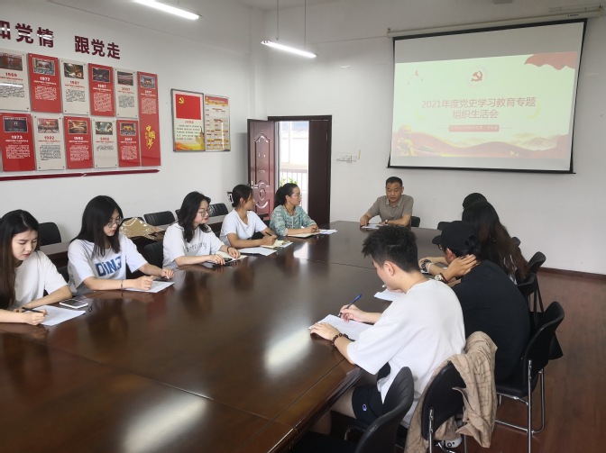 9月3日中午,艺术设计学院学生第二党支部在学院206室召开2021年度党史学习教育专题组织生活会。党支部书记孟娟主持会议,总支书记李道亮列席指导组织生活会,全体党员参加大会。