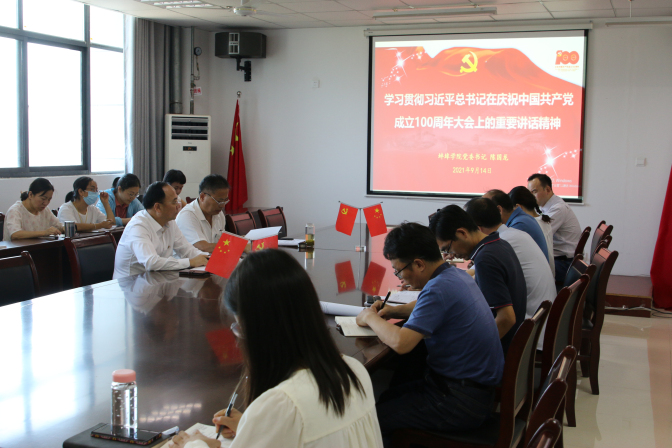 为深入学习贯彻习近平总书记在庆祝中国共产党成立100周年大会上的重要讲话精神,推动党史学习教育进一步走深走实,2021914日上午,校党委书记陈国龙在党委委员、宣传部长李荣的陪同下,到马克思主义学院讲授“七一”重要讲话精神专题党课。