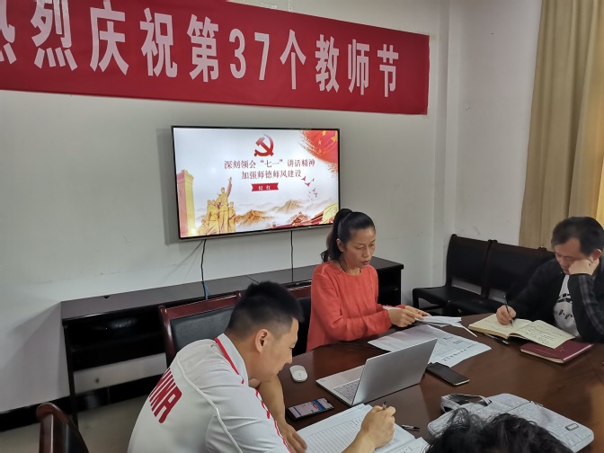 为深入学习贯彻习近平总书记“七一”重要讲话精神,引导教师学党史、立师德、正师风,9月17日,体育教学部直属党支部书记纪红在体育教学部会议,为教师们上了一堂题为《深刻领会七一讲话精神,加强师德师风建设》的党课。