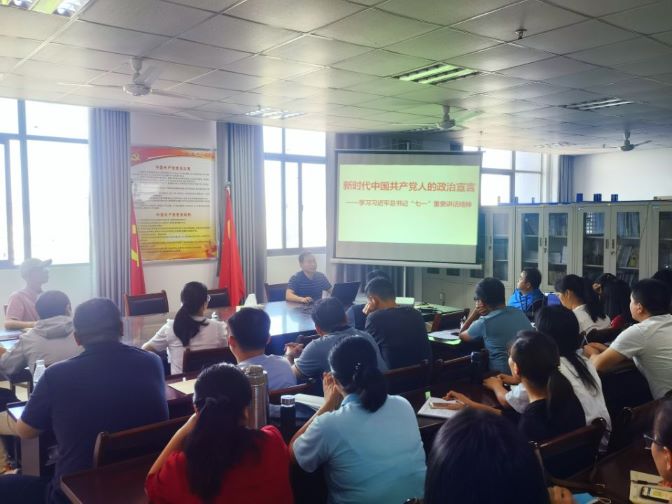 为落实《关于做好党员领导干部讲“七一”重要讲话精神专题党课工作的通知》学习字【202127号文件精神,923日,机械与车辆工程学院党总支书记刘春景在会议室为全体教职工讲授了题为《新时代中国共产党人的政治宣言——学习习近平总书记“七一”重要讲话精神》专题党课。