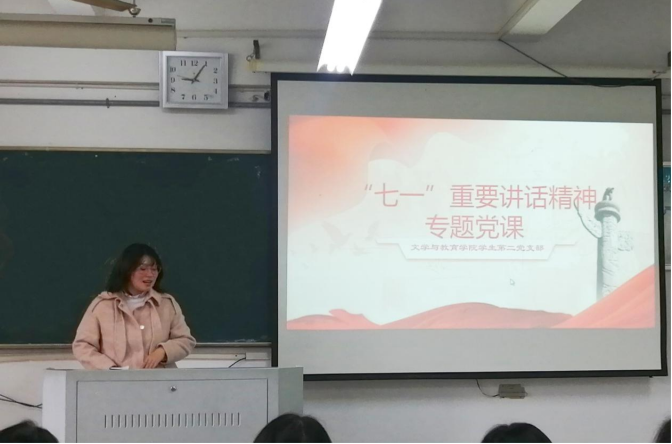 为深入学习习近平总书记“七一”重要讲话精神,提升党支部成员的政治修养。10月20日中午12:40,文学与教育学院学生第二党支部在教室B324开展“七一”重要讲话精神专题党课。