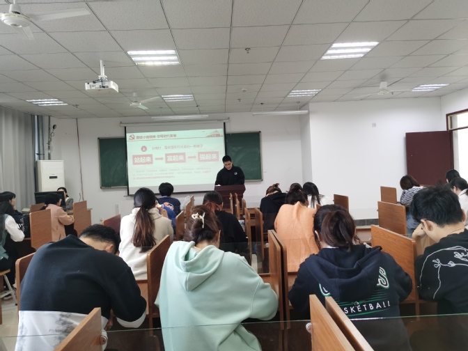 10月29日,外国语学院党总支邀请思政辅导员马克思主义学院耿娟老师、校学生党史知识宣讲团成员开展习近平总书记在庆祝中国共产党成立100周年大会上的重要讲话精神、东北抗联精神、小岗村精神等党史宣讲,学院部分党员教师和全体学生党员聆听了宣讲。