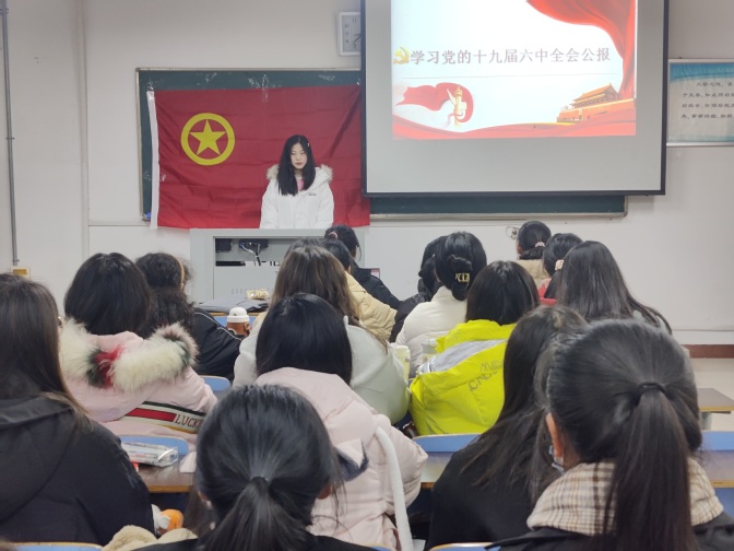 为深入学习贯彻党的十九届六中全会精神,12月17日晚,外国语学院在教学楼B120举办党的十九届六中全会精神集体学习会。20翻译班在团支部书记主持下开展集中学习。团支部书记王澜将党的十九届六中全会精神与党史学习教育、习近平总书记“七一”重要讲话精神紧密结合,围绕全会审议通过的《中共中央关于党的百年奋斗重大成就和历史经验的决议》,畅谈自己的学习过程,从中国共产党百年奋斗的精神之源、初心使命、新时代的历史性成就和历史性变革谈自己的学习体会,表示青年学生应汲取建党精神的丰富营养,弘扬伟大建党精神,在新时代中建功立业。