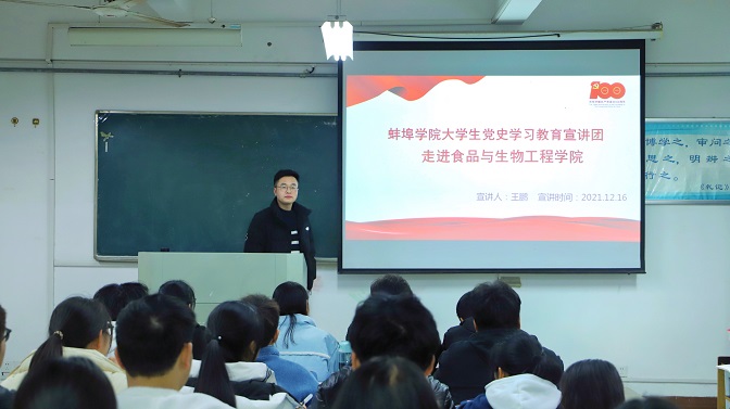 为深入学习贯彻党的十九届六中全会精神,引导广大青年学生理解党的百年奋斗重大成就和历史经验,坚定理想信念,食品与生物工程学院团总支通过线下宣讲、线上学习等多种形式,学习领会党的十九届六中全会精神。