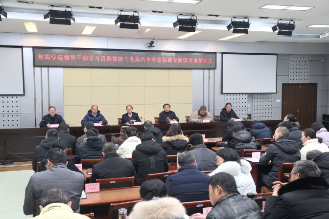12月30日,蚌埠学院领导干部学习贯彻党的十九届六中全会精神专题读书班结业式在行政楼视频会议室举行。党委书记陈国龙出席仪式并讲话。副校长郑桂富主持仪式。读书班全体学员参加仪式。