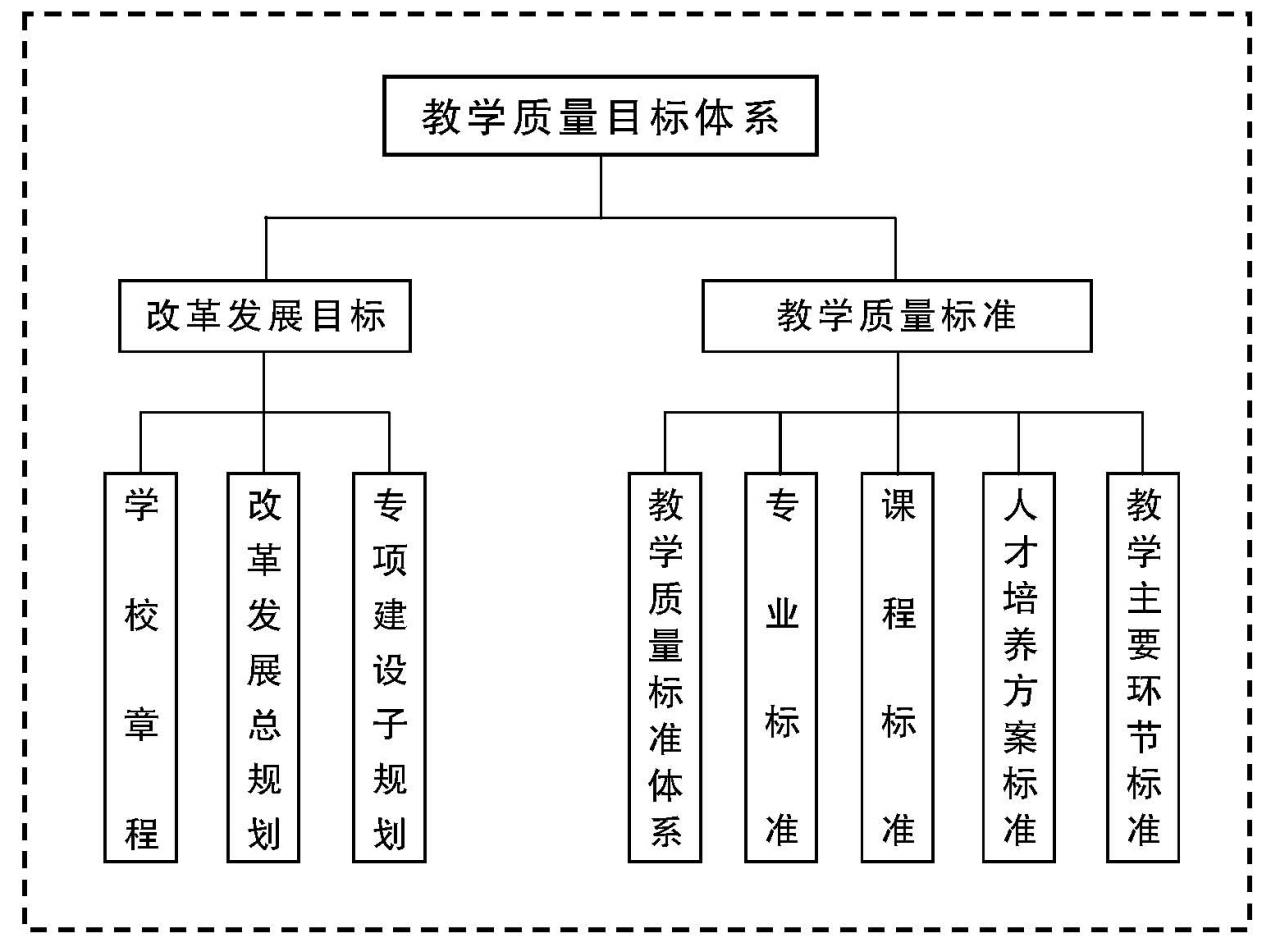 第六条 教学质量目标体系。教学质量目标包括改革发展目标、教学质量标准。其结构如下: