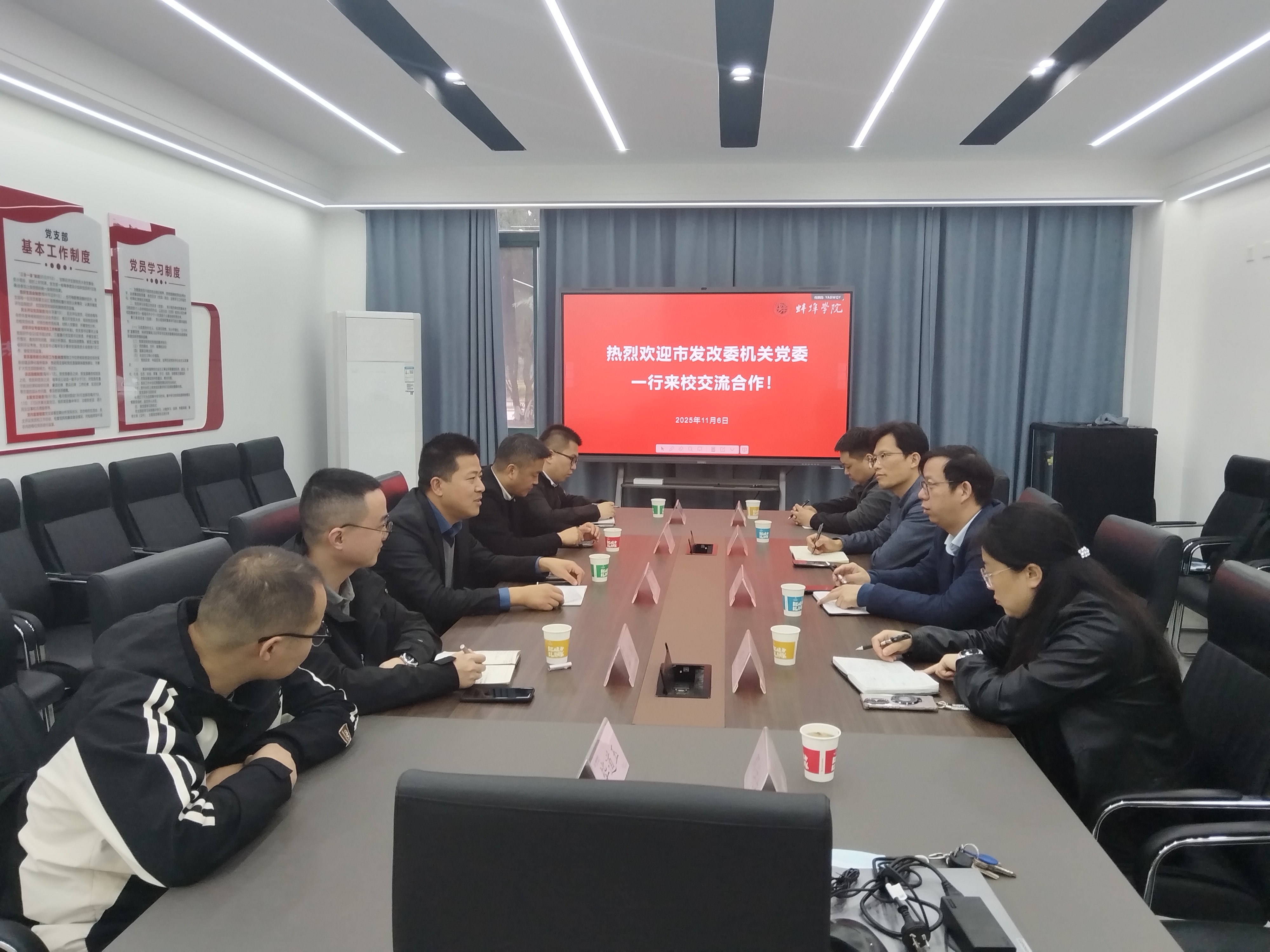 座谈会上,孙西超对市发改委一行表示欢迎,并详细介绍了行政党总支基本情况和服务地方工作开展成效。他围绕“党建+业务”融合发展提出合作设想,表示可依托学校在发改系统的创新平台开展党组织共建活动,同时希望市发改委在项目申报、平台建设等方面给予学校更多支持。张伟介绍了市发改委机关党委的工作情况,并充分肯定了近年来学校在对接地方产业发展、深化产教融合方面取得的显著成绩,他表示,双方不仅渊源深厚,而且联系紧密,期待未来围绕党支部共建与业务拓展进一步深化合作。