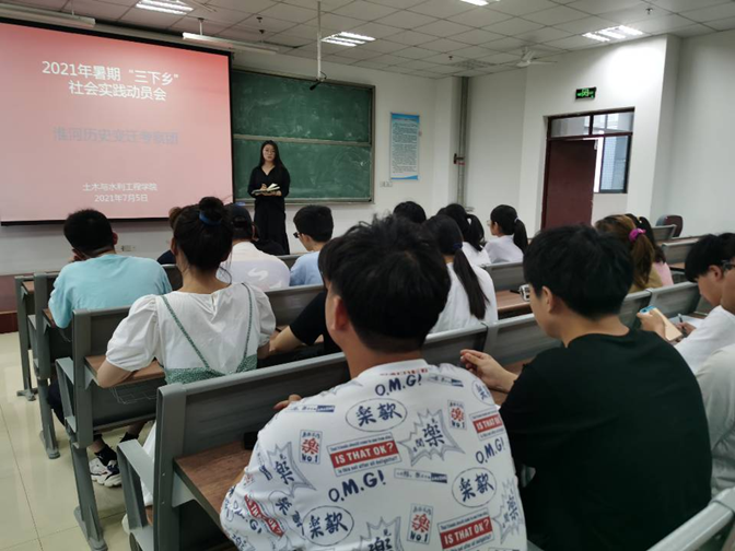 为了让同学们更好的了解淮河历史变迁的过程,加强有关水利水电专业知识的了解,增进学生对水资源开发利用的绿色发展观念,土木与水利工程学院组成了“淮河历史变迁考察团”暑期“三下乡”社会实践团,并于实践前开展了动员会。