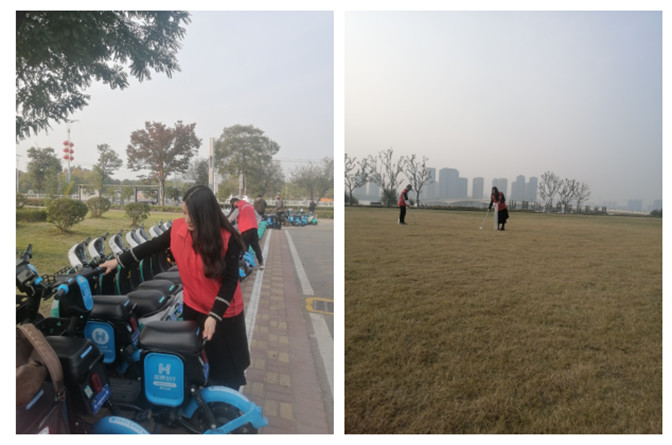 志愿活动开始后,教师志愿者们积极投入到志愿服务中去,每位教工支部党员佩戴党徽,身穿志愿红马甲,来到公园步道、草坪、湖边等处捡拾烟头、果皮等垃圾,劝导不文明行为。同时志愿者们还来到共享单车停放处,耐心整理摆放混乱的共享单车。志愿红在美丽的龙子湖旁格外的耀眼,教师志愿者们的一言一行感染着每一位路人,用实际行动倡议讲文明、树新风,共同维护公共卫生环境。