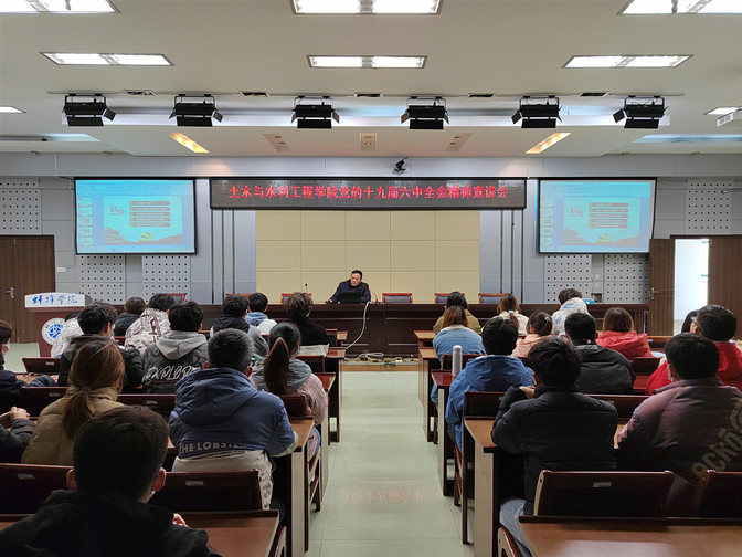 为深入学习贯彻党的十九届六中全会精神,多层面覆盖全院学生,12月17日中午,土木与水利工程学院在视频会议室举行党的十九届六中全会精神宣讲会,学院党委书记张兆亮主讲,本学期发展的团员、部分团干和学生党员参加了此次学习。