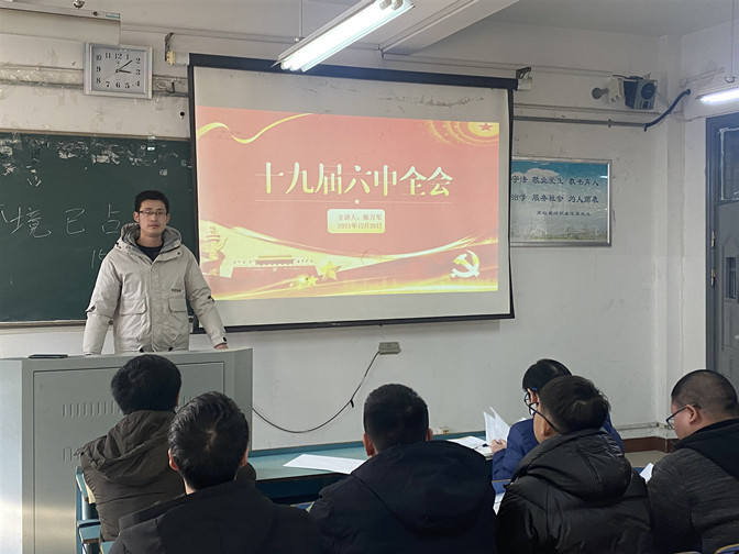 学习宣传贯彻党的十九届六中全会精神是当前和今后一个时期的重大政治任务,切实把全会精神学习好、宣传好、贯彻好,要在学懂弄通做实上下功夫,要入脑入心、求真务实,做到内化于心、外化于行、知行合一。12月28日,土木与水利工程学院学生党支部在教学楼B309宣讲十九届六中全会精神,会议由学生党支部书记陈万军主持。