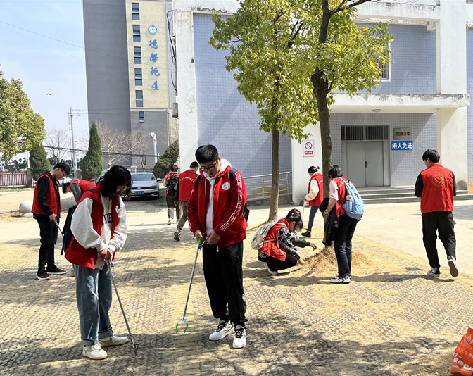 活动现场,支部全体青年党员干部开展了大清扫志愿服务活动,党员们拿着扫帚、铲子、夹子等清洁工具行动起来,不怕脏、不怕累,历时2个多小时,把学校卫生区的烟头、纸屑、塑料废弃物等各类垃圾进行了清理,同时对各处卫生死角进行了清扫。清扫活动贯彻了党支部“服务他人,提升自我”的宗旨,提升了党支部的凝聚力以及支部服务全院师生的主动性和积极性,让同学们都能积极参与到保持良好卫生环境工作中去。