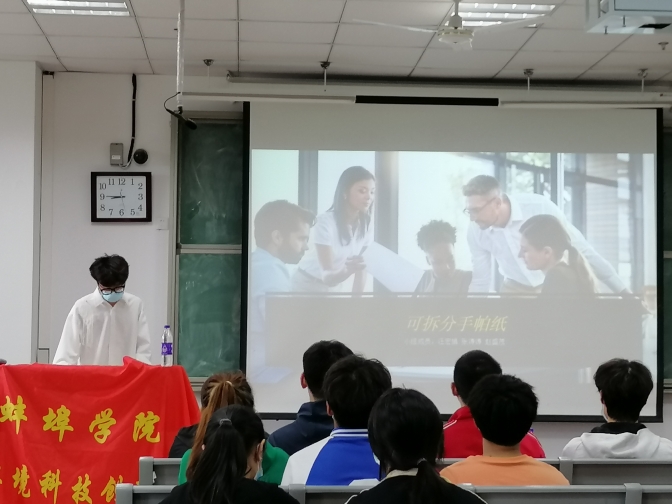 赛前,生态环境科技创新协会以第九届社团文化节为契机积极进行线上线下广泛宣传,吸引来自全校多个学院的学生组队参赛,各队伍紧紧围绕“喜迎二十大,共创新未来”为主题,通过PPT展示,介绍各自绿色环保的产品以及想法。比赛过程中,各队伍根据自身专业知识,精心设计PPT,汇报人深入浅出,详细地回答了评委们提出的相关问题。经过激烈的角逐,最终21环境生态工程马佶组《旋转式晾被架》获得一等奖,21土木工程一班周远洋组《污水的第二次生命——农村污水变废为宝》等获得二等奖,21工业设计杜媛媛组《新型包装的多级利用》等获得三等奖。