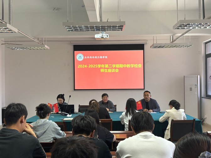 为进一步加强教育教学管理,强化师生双向交流,根据学校期中教学检查要求,土木与水利工程学院于4月25日在学院会议室召开了2024-2025学年第二学期期中教学检查师生座谈会。会议由副院长朱兰保主持,校级教学督导甘瑞侠莅临指导,教学管理人员、教研室主任、教师代表和学生代表共计40余人参加了本次座谈会。