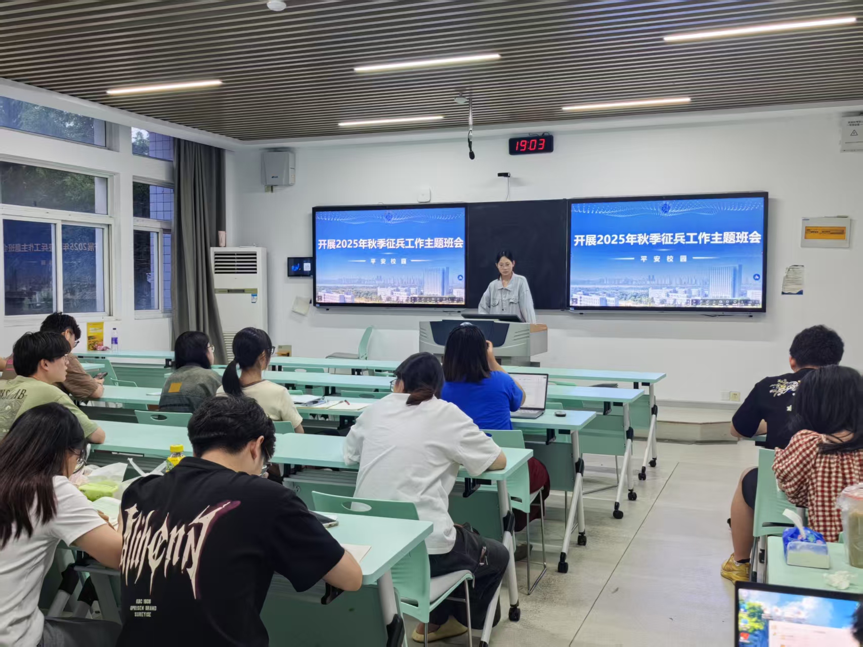 班会课上,各班在征兵宣传视频《火热军营 精彩人生》中拉开国防教育的序幕。各班的班长详细解读了现代国防的多维内涵,强调国防不仅关乎军事安全,还涉及经济、科技、文化等诸多领域,同学们深刻认识到国防建设是国家发展的重要保障,与每个人都息息相关。在互动环节,同学们积极发言,探讨国防建设对个人生活和国家发展的影响,进一步深化对国防重要性的理解。征兵动员环节,各班辅导员老师们向同学们详细介绍了征兵政策,涵盖了报名流程、服役待遇、发展前景等内容,解读了大学生参军在学业、就业、经济补助等方面的优惠政策。各班辅导员还传达了学校2025年秋季征兵工作的通知,明确了报名时间和相关要求,为有意向参军的同学提供了清晰的指引。