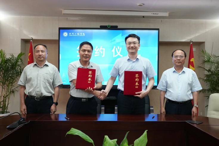 为深入贯彻落实长三角一体化发展战略,加快推进开放办学进程,7月3日下午,我校与宁波工程学院签订战略合作协议,签约仪式在宁波工程学院风华校区行政楼318会议室举行。蚌埠学院党委书记陈国龙、宁波工程学院党委书记冯建波见证签约,蚌埠学院党委委员、副院长郭有强与宁波工程学院党委委员、副院长张水潮代表双方签署协议。宁波工程学院研究生处、科研处、统计与数据科学学院、网络空间安全学院,我校科研处、计算机与信息工程学院等相关部门负责同志参加签约仪式。