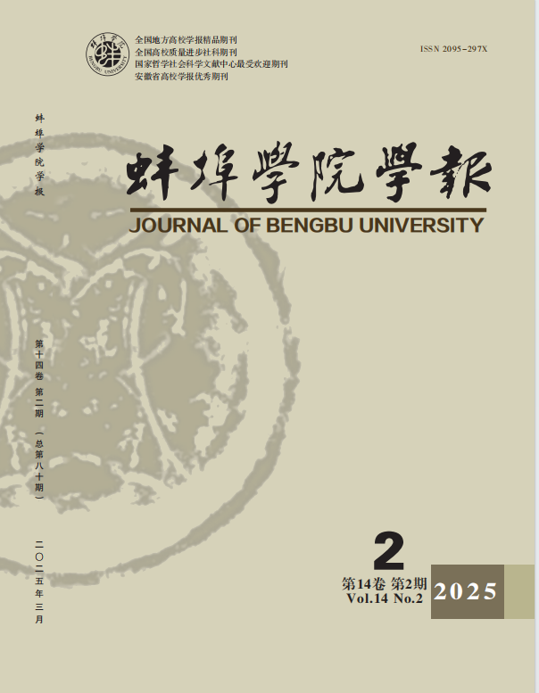 《蚌埠学院学报》为双月刊,大16开,逢单月10日出版,国内统一连续出版物号 CN34-1321/Z,国际标准连续出版物号ISSN 2095-297X。常设栏目主要有:工程技术研究、电子与电气工程、材料与化工技术、生物与食品工程、基础科学研究、思政理论研究、文学理论与新闻传播、艺术设计与创作、区域经济建设与管理、外语研究、高等教育与教学、淮河文化研究、蚌埠地方文化研究等,涵盖机械、电子、计算机、建筑、生物、食品、文学、艺术、设计、教育、教学、思想政治、高校管理、淮河文化研究等诸多学科。其中,淮河文化研究为我们的特色栏目。