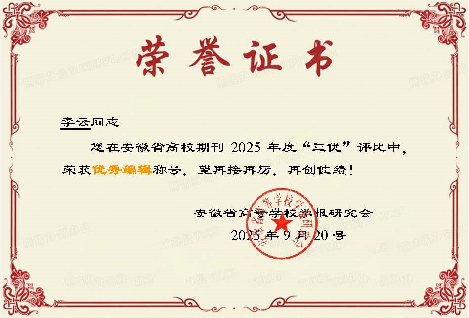 2025年9月23日,安徽省高等学校学报研究会公布了“2025年度安徽省高等学校期刊优秀编辑”评选结果,学报杂志社编辑李云获评“优秀编辑”称号。