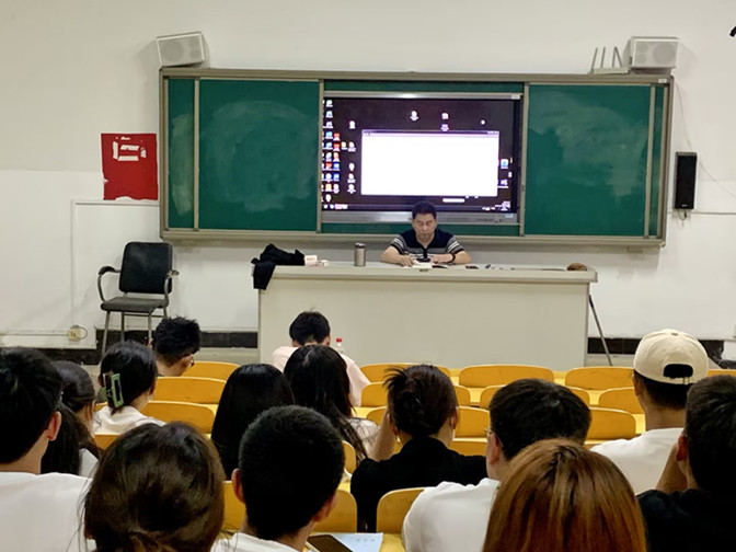 6月14日晚上,应用技术学院学院党总支书记程志龙在多媒体3教室为全体学生党员讲了一堂主题教育专题党课。