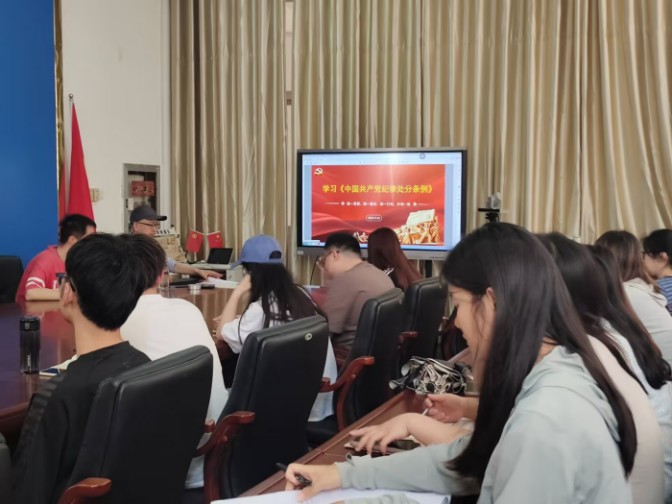 此次党课还进行了反腐系列纪录片《零容忍》中的《打虎拍蝇》篇章观看学习。纪录片中的数起上至国家级领导干部下至基层公职人员违纪受到严肃处理的真实案例,体现了我们党坚持严的总基调,全面加强党的纪律建设,在全链条全周期全覆盖上持续用力,不断增强自我净化、自我完善、自我革新、自我提高能力的坚定决心,也彰显了我们党对腐败现象的零容忍态度。通过对纪录片的观看学习,在场党员同志对学习党纪学习的重要性有了更深层次的理解和认识。会后,党员同学纷纷表示,今后会把学习贯彻新修订的条例作为重要政治任务,时刻牢记党的纪律,不碰底线、不越红线,保持共产党员的先进性和纯洁性,踏踏实实做事,清清白白做人,认真做好自己的本职工作。